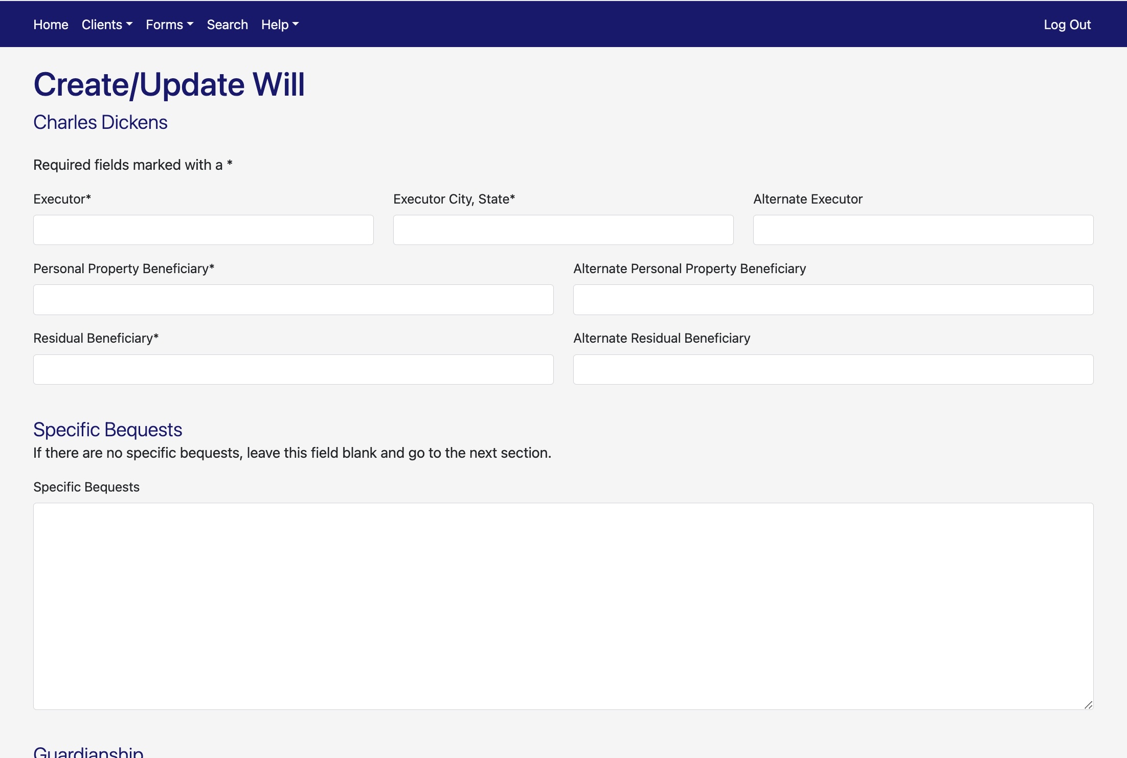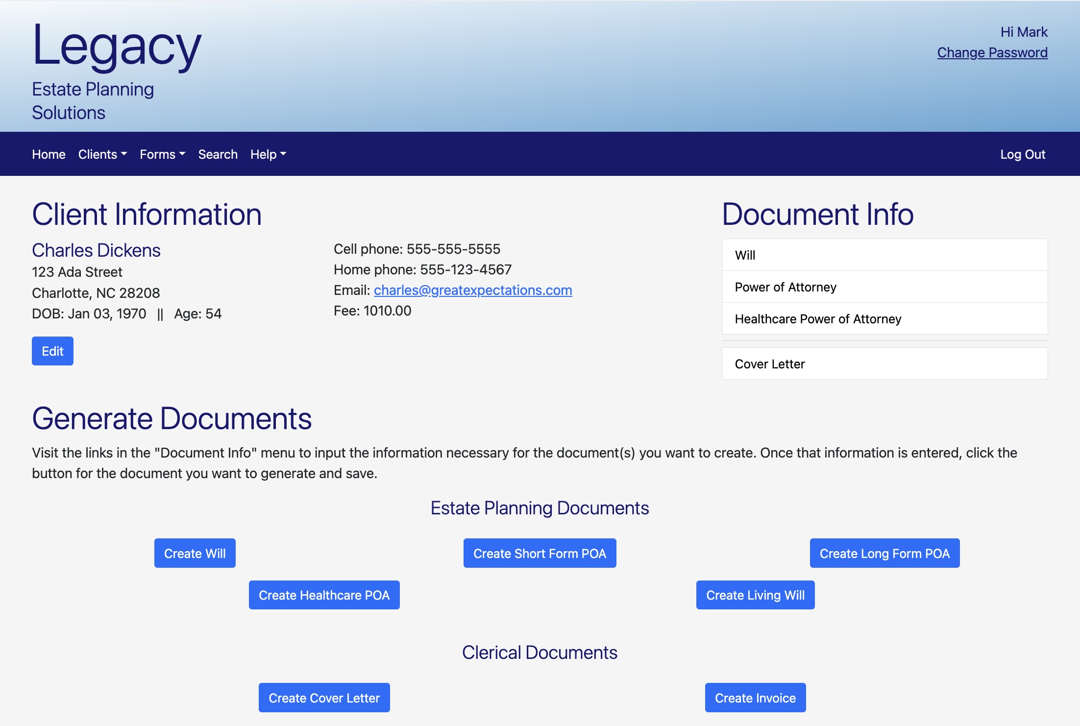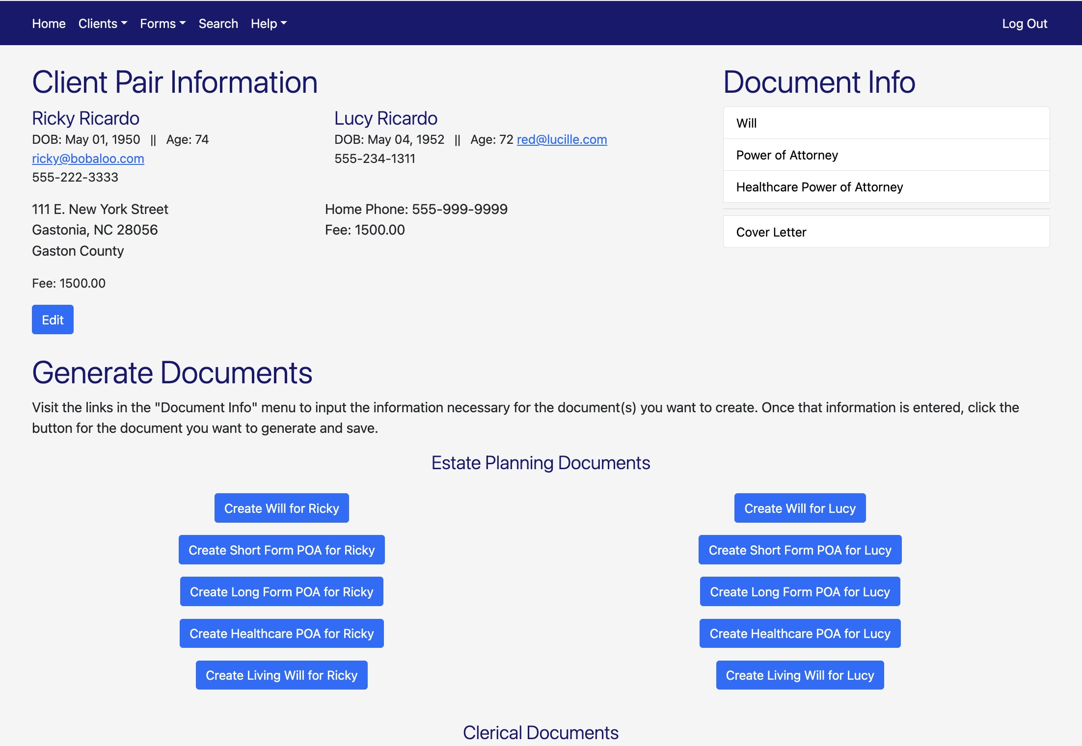 One of the handiest features is the ability to create client pairs. This is ideal for couples who need reciprocal documents.