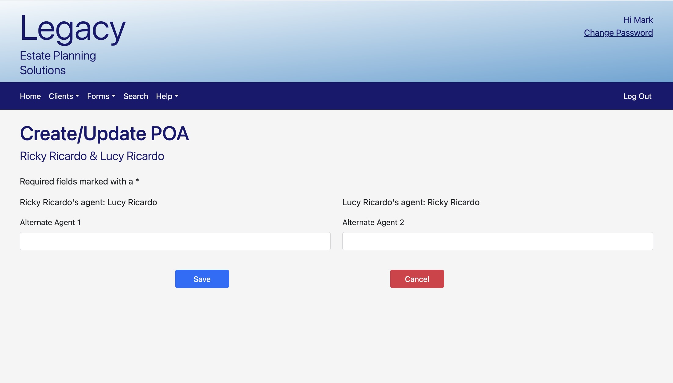 When creating reciprocal documents, the reciprocal fields are automatically populated. In this instance, each member of the couple is named as the other's agent without any additional data entry.